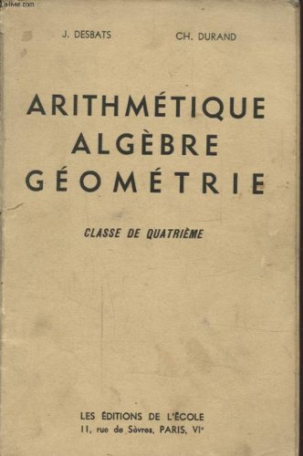 ARITHMETIQUE ALGEBRE GEOMETRIE CLASSE DE QUATRIEME de ... ARITHMETIQUE ALGEBRE GEOMETRIE CLASSE DE QUATRIEME par ... ont été vendues pour EUR ... chaque exemplaire. Le livre publié par Michel Lafon. Il contient ... pages et classé dans le genre Thèmes. Ce livre a une bonne réponse du lecteur, il a la